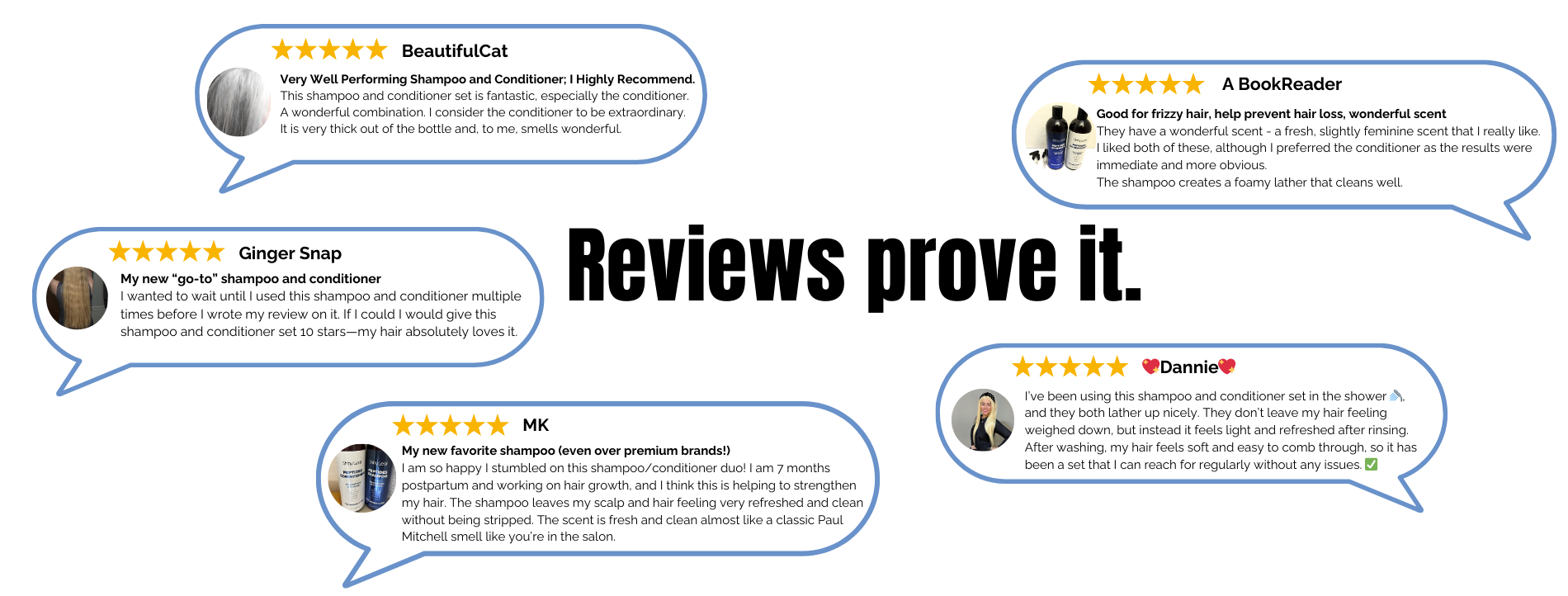 Our formula blends peptides with Biotin, Caffeine, and Saw Palmetto—ingredients long recognized for supporting healthy hair and scalp. To boost hydration and shine, we’ve added nourishing botanicals and oils such as Shea Butter, Avocado Oil, and Castor Oil. The result: moisturized strands, smoother split ends, and a revitalized look without sulfates, parabens, or harsh chemicals.