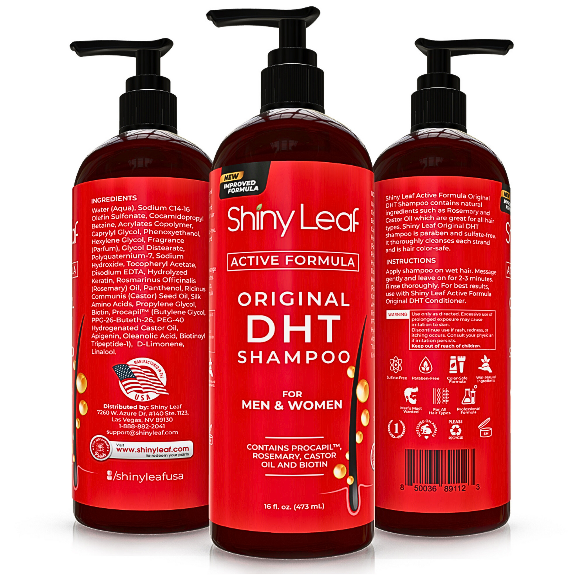 The Original DHT Shampoo is expertly formulated to help support thicker, healthier-looking hair using a powerful blend of natural and scientifically backed ingredients. At its core is Procapil, a trusted complex that helps protect hair follicles from the damaging effects of DHT, a key contributor to hair thinning. Enriched with Rosemary oil to invigorate the scalp, Castor oil to deeply nourish and moisturize, and Biotin to fortify strands from root to tip, this shampoo delivers targeted care with every wash. Whether you're experiencing early signs of thinning or simply want to maintain fuller hair, this revitalizing formula is your go-to solution for stronger, more resilient hair. fuller heads of glossy locks!